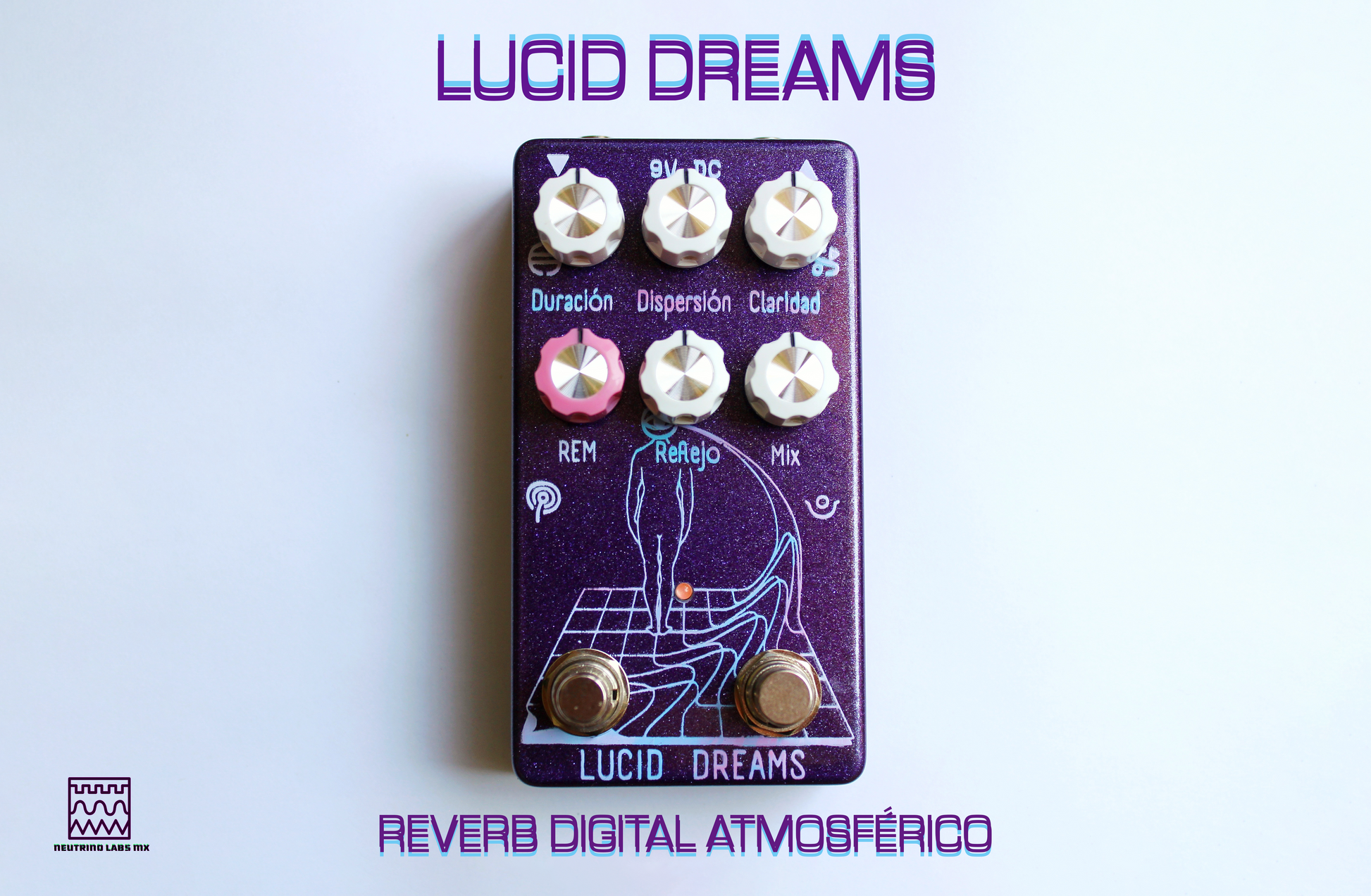 Se trata de nuestro primer pedal trabajado con el DSP Fv-1. Lucid Dreams está basado en el Afterneath V2, con dos modificaciones que solo Neutrino Labs Mx podría hacer: