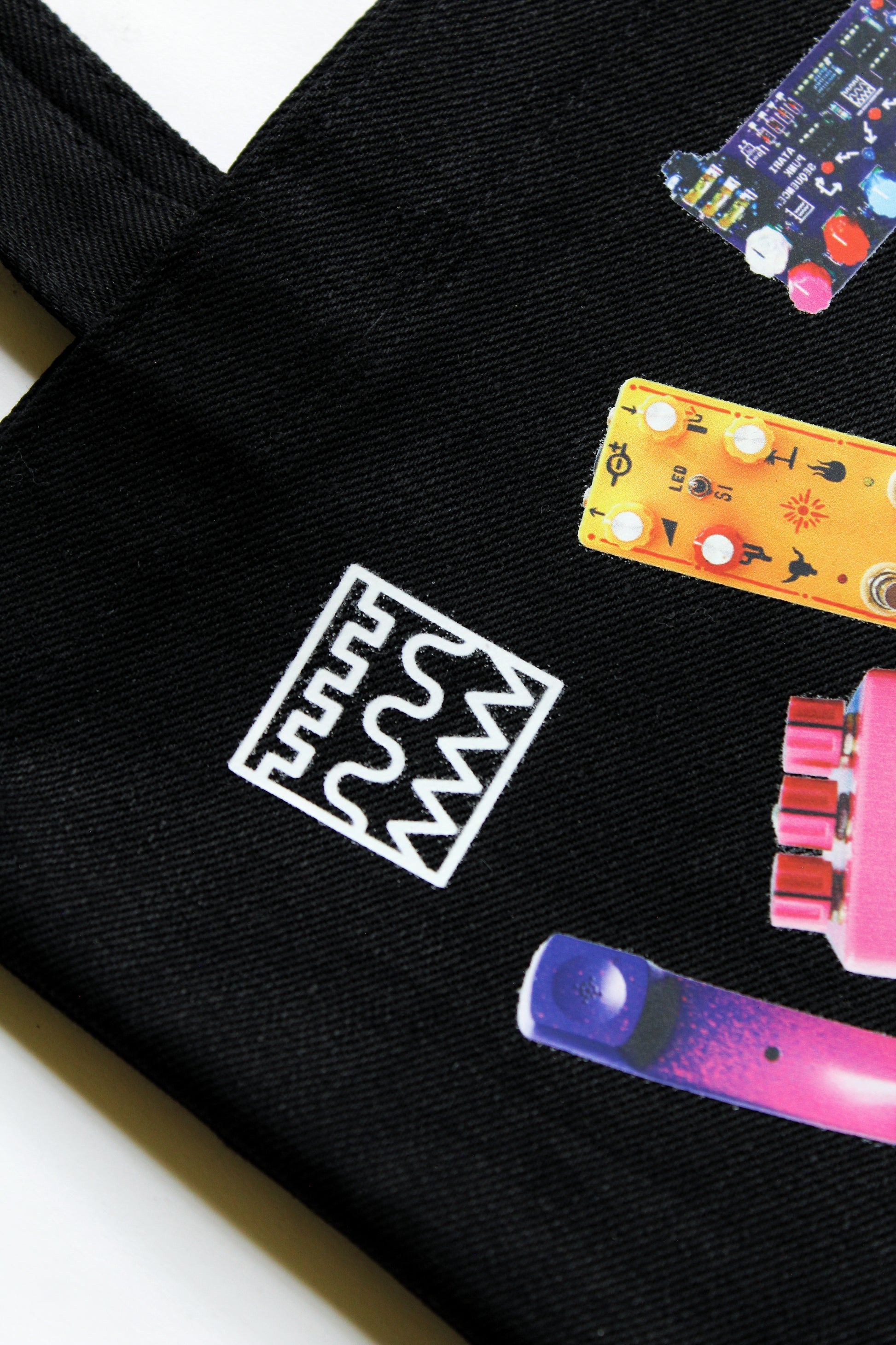 En ellas puedes guardar viniles, pedales, micrófonos, incluso pequeños y medianos sintetizadores. Cada tote bag incluye un pack de stickers ;)
